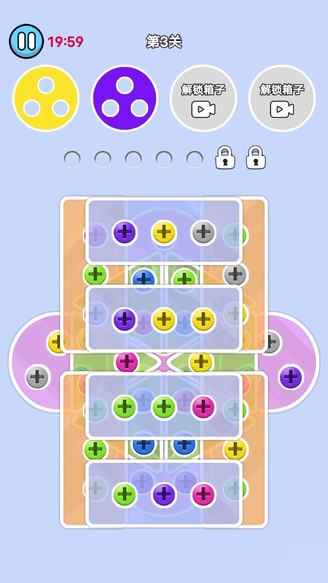 道具辅助系统:提供多种道具帮助玩家快速消除螺丝,提升通关效率。