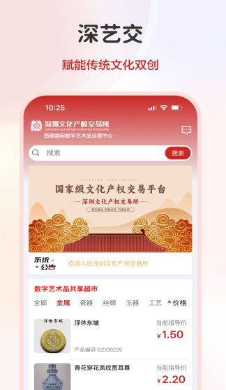 深艺交app是一款专注于艺术藏品领域的综合服务平台,为艺术爱好者和收藏家打造了一个便捷的线上交流与交易空间。在这里,用户可以随时浏览海量艺术藏品资讯,从古典绘画到现代数字艺术,各类珍品应有尽有。平台采用简洁直观的操作界面,让用户能够轻松完成藏品浏览、收藏和交易等操作。同时,实时更新的市场动态和专业藏品分析,帮助用户及时把握艺术市场脉搏,无论是资深藏家还是艺术新人,都能在这里找到属于自己的艺术天地。