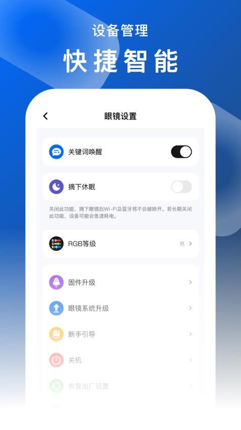 集成了完善的设备管理系统,用户可以随时查看设备信息、管理存储空间、设置使用偏好等。系统还会定期提醒用户进行设备维护,确保智能眼镜始终保持最佳性能。