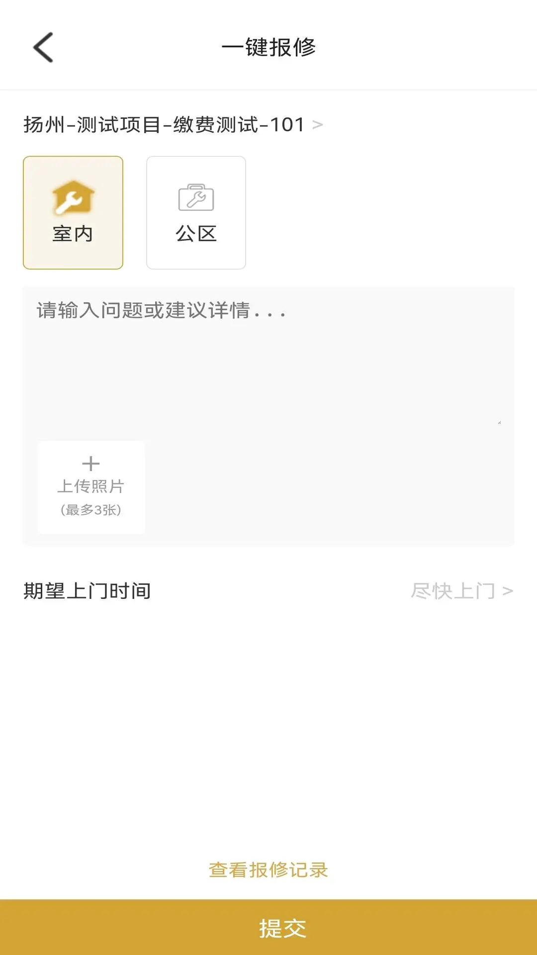 可视化报事报修平台,业主可上传图片描述问题详情