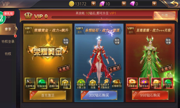 超值首充礼包仅需5元即可获得霸气坐骑,更有机会赢取钻石和顶级装备。游戏内还设有多种成长基金和投资计划,让玩家获得超值回报。