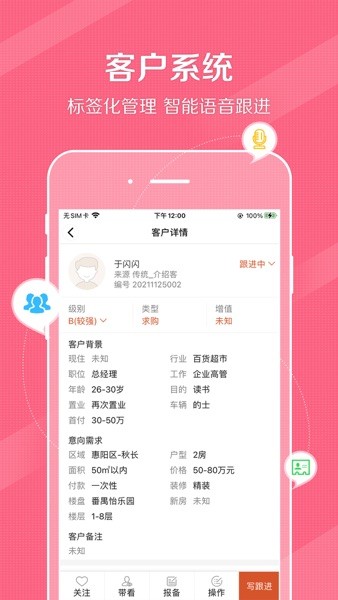 客户拓展:提供客户信息录入、跟进记录、需求分析等功能,帮助中介人员精准把握客户需求。系统还能自动生成客户画像,为后续的营销策略提供数据支持。