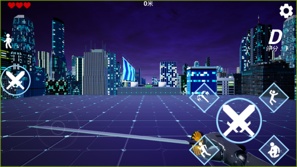 《疾速之刃》最引人注目的特色之一是其令人惊叹的赛博朋克视觉表现。游戏3D场景完美融合了霓虹光影与未来科技元素,曾荣获多项独立游戏视觉奖项。特别是未来都市的夜景设计,充满视觉冲击力,为玩家营造出极具沉浸感的游戏世界。