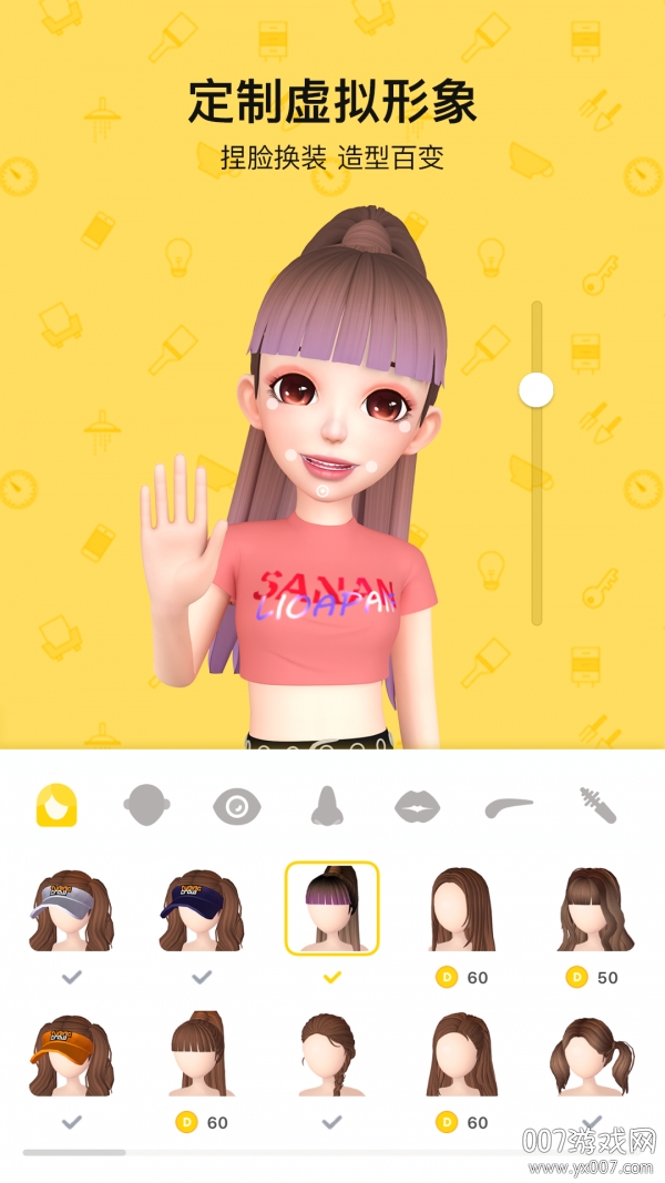 每个人都可以捏制自己的3D虚拟人物,这就是你在这个虚拟世界的人设。你可以DIY脸型眼睛眉毛鼻子嘴巴等所有五官,同时基于人脸识别技术,你可以实时的驱动这个人物。系统提供超过100种面部特征选项,让你能创造出独一无二的虚拟形象。