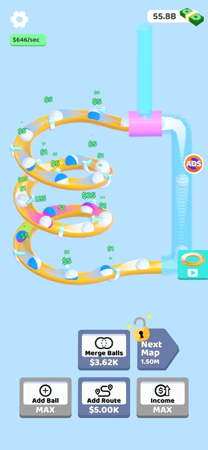 -合并!成长!:通过合并相同等级的弹珠获得更高级别弹珠,体验成长乐趣。