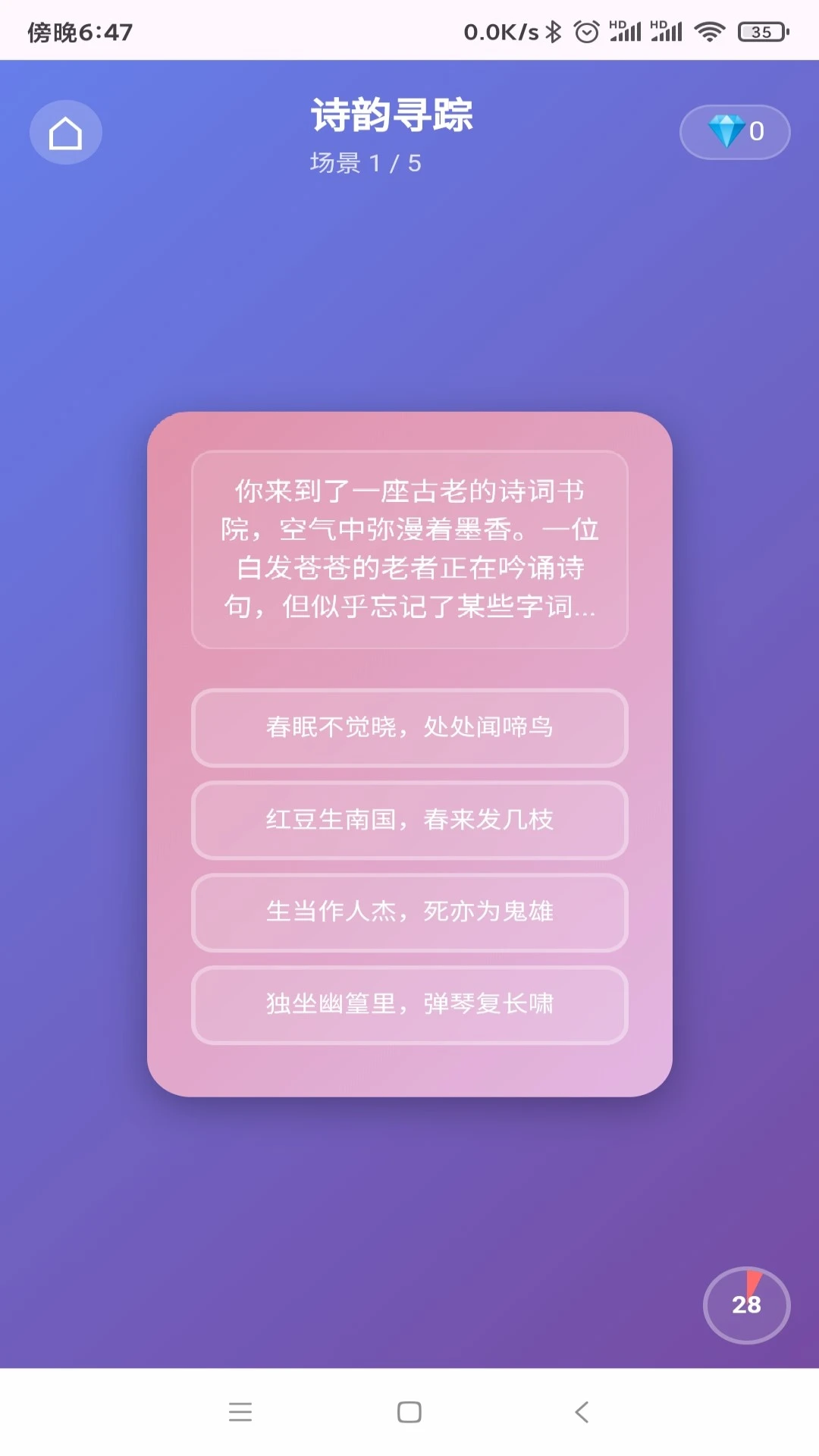 诗境解码是一款专注于古诗文深度理解的APP,通过逐句解析、典故溯源和意境还原,带您真正读懂古诗背后的情感与智慧。这款应用不仅打破了传统古诗学习的枯燥模式,还以沉浸式体验让用户感受到千年文化的魅力。无论是学生、教师还是传统文化爱好者,都能通过诗境解码轻松掌握古诗精髓,让学习过程充满趣味与启发。