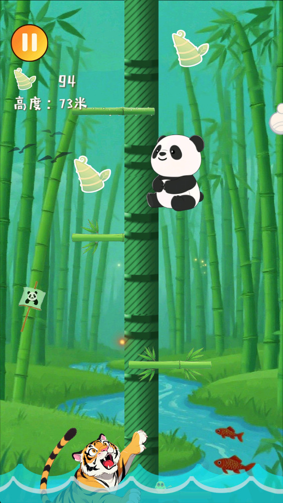 通过左右点击屏幕来控制熊猫向上攀爬,操作看似简单实则充满技巧。你需要掌握好点击的节奏和力度,才能让熊猫稳稳地向上移动。