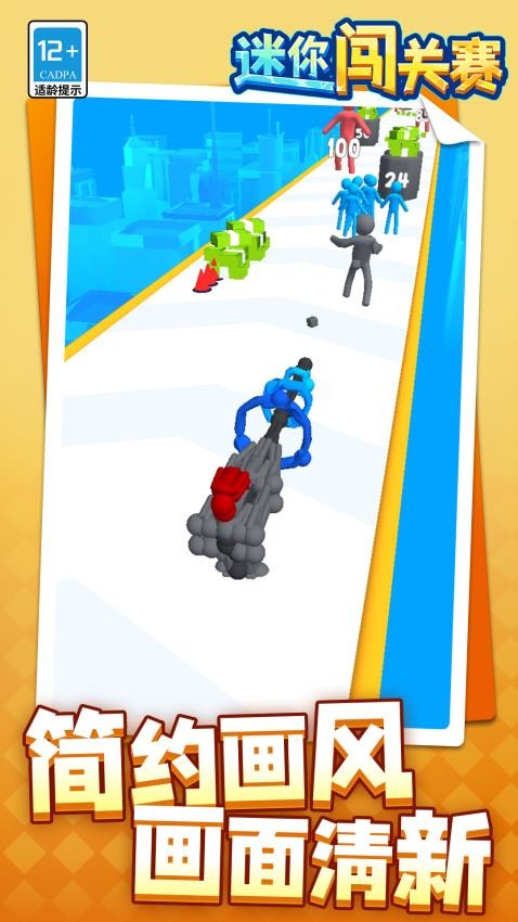 《迷你闯关赛最新版》是一款充满创意与欢乐的跑酷冒险游戏。在这个充满想象力的世界里,玩家将操控可爱的橡皮人角色,通过收集散落的小人儿来组建强力武器对抗怪物。游戏采用创新的物理引擎,角色动作夸张搞笑,碰撞时会产生各种滑稽变形。随着关卡推进,玩家将面临越来越复杂的机关陷阱和特殊事件,需要巧妙运用收集到的道具和角色技能来突破难关。游戏画面色彩明快,操作简单易上手,但想要精通则需要掌握精准的时机把握和策略搭配,为玩家带来轻松愉快又富有挑战性的游戏体验。