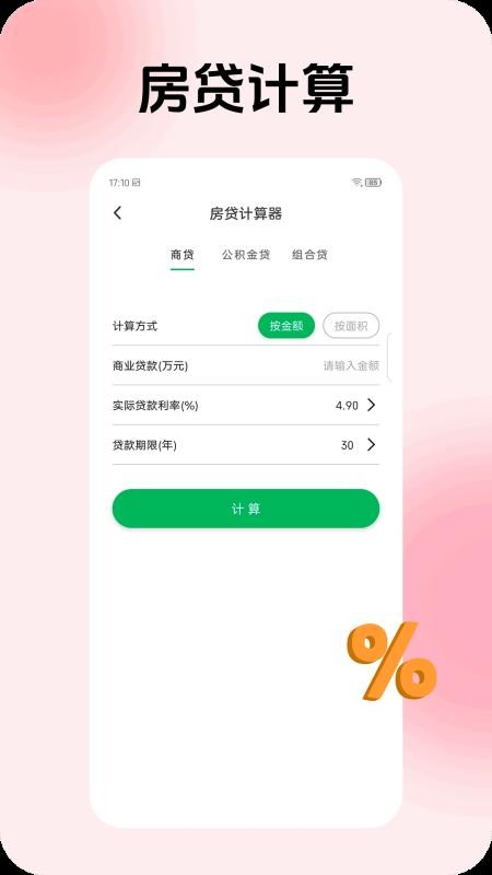 嘀嗒计算器的房贷计算器功能非常实用,支持商业贷款、公积金贷款以及组合贷款等多种贷款类型的计算,帮助用户快速了解还款金额和利息。
