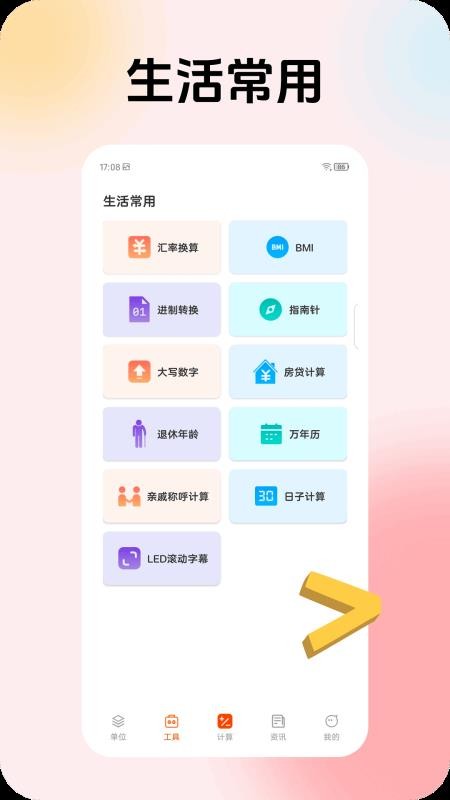 此外,嘀嗒计算器还提供了多种生活常用工具,如指南针、万年历等,为用户的生活提供了极大的便利。