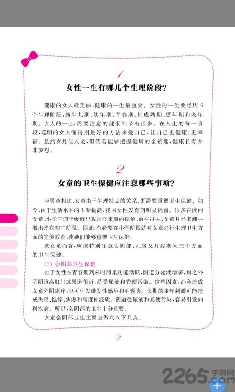 本应用是基于专业医学知识开发的女性健康百科全书,内容涵盖女性全生命周期的健康管理需求。全书精心编排为6大章节,从基础生理知识到常见疾病防治,循序渐进地帮助女性用户掌握科学的自我护理方法。每个章节都配有详细的图文解说和视频演示,让专业知识变得通俗易懂。无论是青春期保健、经期护理,还是妇科炎症防治,你都能在这里找到专业可靠的指导建议。
