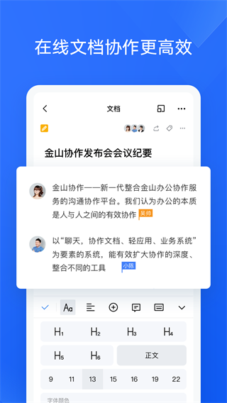 无论是日常文档处理、项目协作还是远程会议,金山协作都提供了专业解决方案,支持移动办公、居家办公等多样化工作场景,适应不同规模企业的协作需求。