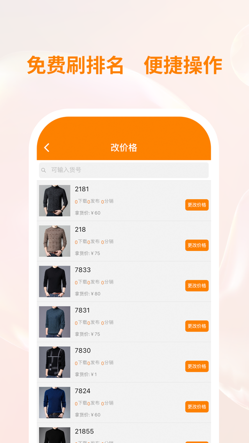 衣衫汇男装厂家版app具备多项创新功能:智能店铺管理系统让日常运营变得简单高效;灵活的商品调价功能支持随时随地进行价格策略调整;独特的免费刷排名工具帮助商家快速提升商品曝光;实时数据监控面板则让经营者对店铺运营状况一目了然,为决策提供数据支持。