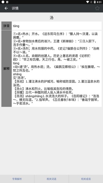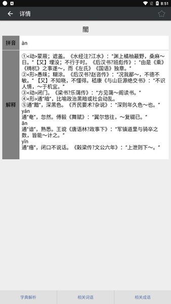 文言文字典收录了将近3900个文言文常用字,每个字都配有详细的拼音、解释、出处及用法示例,确保用户能够全面掌握字词的含义。软件内置的搜索引擎功能强大,支持通过文字或拼音快速检索,让查询更加高效便捷。此外,软件还提供文字字典解析功能,用户可以查看相关词语和成语的详细内容,进一步拓展知识面。为了方便学习,软件还支持收藏功能,用户可以随时保存重要字词,便于复习。同时,最近浏览历史功能让软件更加智能,能够根据用户的使用习惯提供个性化服务。