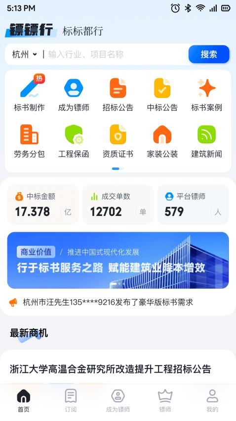 下载并打开镖镖行app,注册登录后即可浏览最新招标信息,系统会根据用户画像智能推荐相关行业商机,帮助快速发现优质项目。
