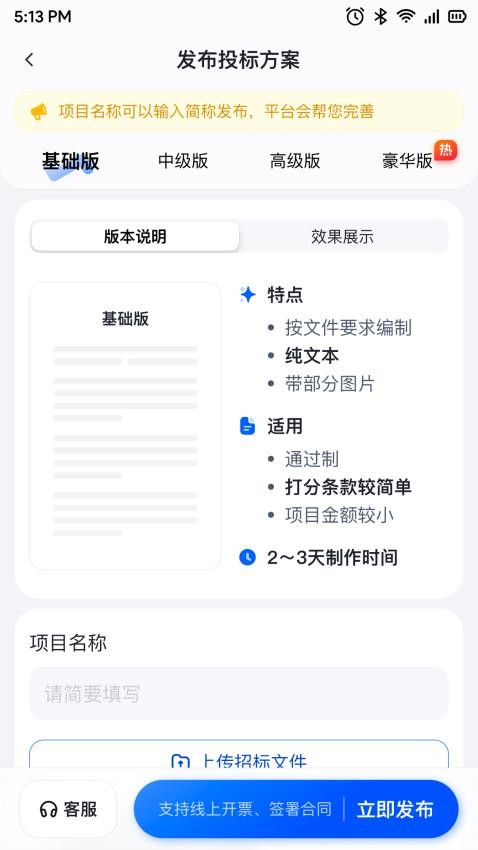 平台提供专业标书制作服务,用户可随时在线联系经验丰富的镖师团队,根据项目需求定制高质量标书,确保投标文件规范完整,大幅提升中标概率。