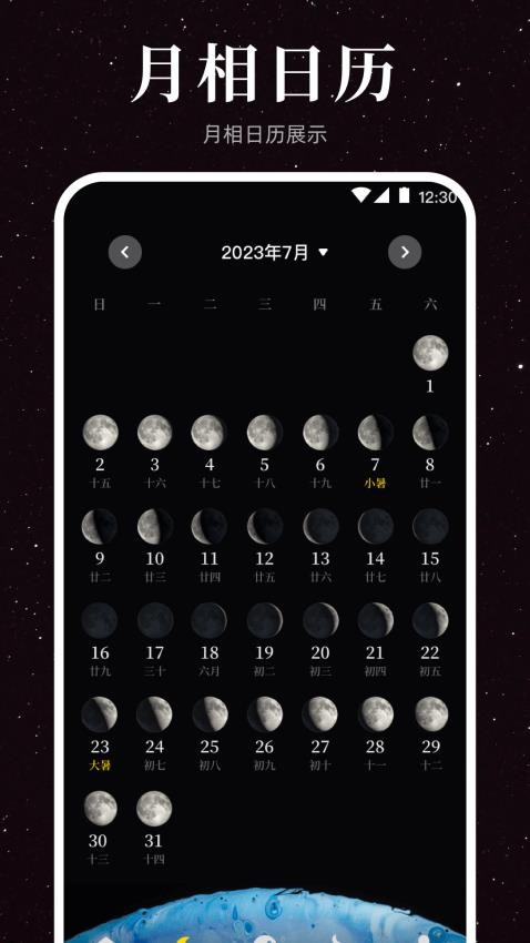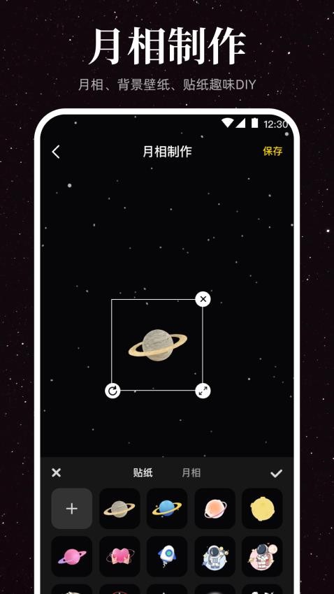 内置创意工具,用户可将喜欢的月相图片制作成个性化壁纸。提供多种滤镜和编辑功能,支持添加文字、调整色调,打造独一无二的手机桌面背景。