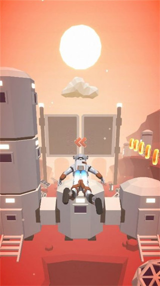 游戏开始时,玩家可以从多种太空服和喷气背包配置中进行个性化选择,每种配置都会带来不同的初始属性加成。进入游戏后,玩家需要通过精准的飞行操控来探索火星的各个区域,在躲避危险障碍物的同时收集稀缺资源。这些资源可以用来升级装备性能,或者解锁新的探索区域。