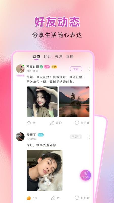动态系统实时更新好友动态,智能分析共同兴趣。系统会根据用户浏览习惯推荐可能感兴趣的话题,帮助开启自然对话。热门话题专区聚集大量活跃用户,随时参与讨论。