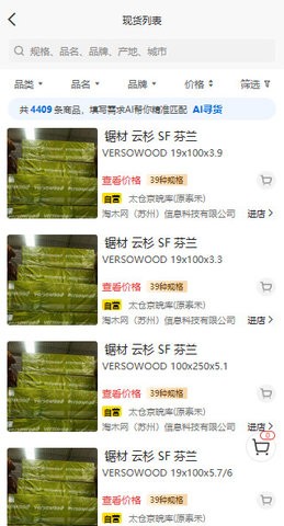 淘木网app拥有智能定位功能,首次使用时授权定位权限后,系统会自动识别您当前所在城市,并优先展示当地资源。同时平台还保留了您历史访问过的城市记录,并会智能推荐热门货源城市,方便您快速切换。基于定位信息,系统会智能推荐距离您最近的优质现货资源,在现货列表中可以清晰看到与您位置相近的货源信息,距离越近意味着运输成本越低。平台支持多条件组合筛选,您可以根据距离、等级、规格等多个维度,快速找到最符合需求的优质货源。