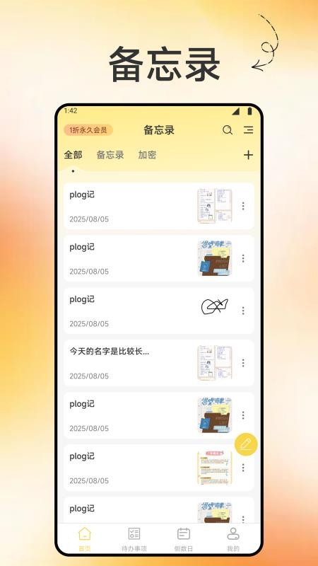 手机备忘记录本app是一款功能全面的事务管理工具,通过智能化的设计帮助用户高效管理日常生活和工作。软件将备忘录、待办事项、倒数日等实用功能完美整合,配合精美的界面设计和个性化设置选项,为用户提供了极佳的使用体验。无论是学生、上班族还是家庭主妇,都能通过这款应用更好地规划时间,提高生活质量。