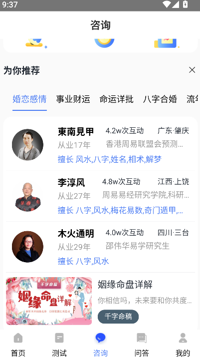 《神巴巴》的功能设计兼顾专业性与趣味性。生辰测试功能支持精确到分钟的八字排盘,可生成包含大运流年、五行喜忌等专业内容的详细命理报告。知识库板块收录了大量优质命理文章,涵盖运势解析、命理入门、风水常识等多个主题,是学习传统文化的便捷平台。名师在线功能让用户可以直接向专业命理师提问,获得个性化解答。此外,软件还提供择吉日、合婚配对等实用工具,帮助用户在重要人生节点做出更明智的选择。