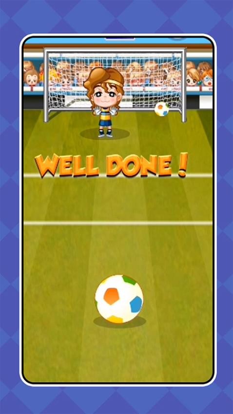 玩家通过滑动屏幕控制足球射门方向与力度,向球门进攻,而球门前有防守球员左右移动阻拦。操作简单直观,但想要精通需要反复练习掌握各种技巧。