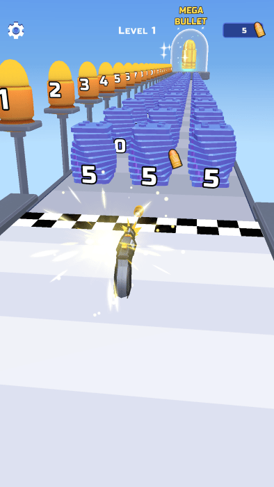 游戏开始时轻点屏幕即可发射子弹,通过精准射击来收集更多弹药资源。游戏中的倍增门是关键道具,通过时能让你的子弹数量成倍增长。随着游戏进程,你可以用收集到的子弹升级武器威力、射击速度和弹匣容量。这里有详细的子弹数量显示和攻击力数值,玩家需要策略性地选择升级路径。游戏还设置了多种特殊障碍,需要特定数量的攻击才能摧毁,考验玩家的资源管理能力。最终关卡将统计你击碎的障碍层数,创造属于自己的最高纪录。