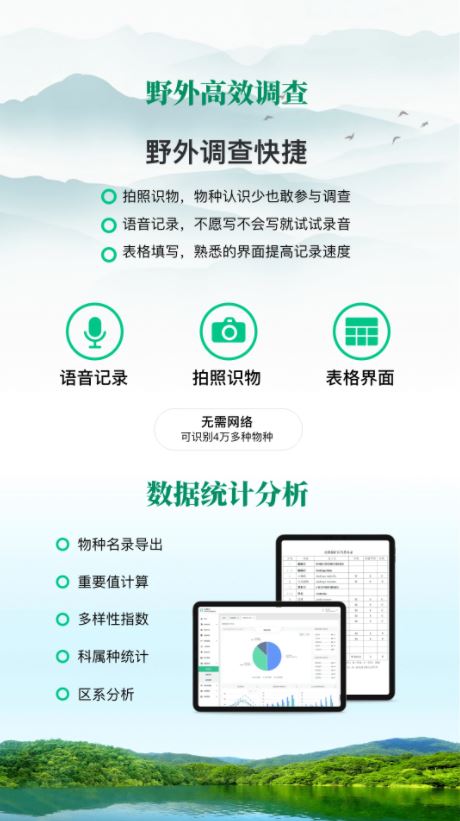 节省生物多样性业务费用:电子化调查方式减少纸张、人工等成本,长期使用可节省大量经费。