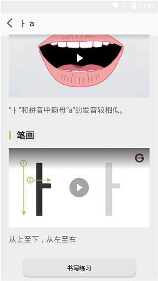 丰富的词汇库:收录480个常用韩语字母,每个字母都配有发音示范、实用单词和例句。