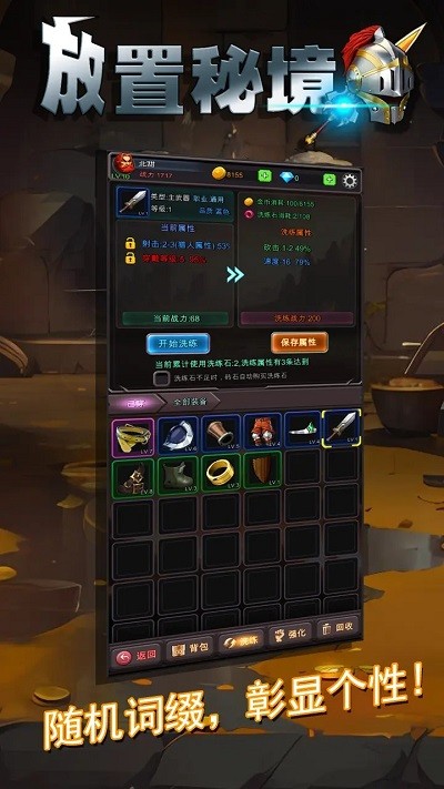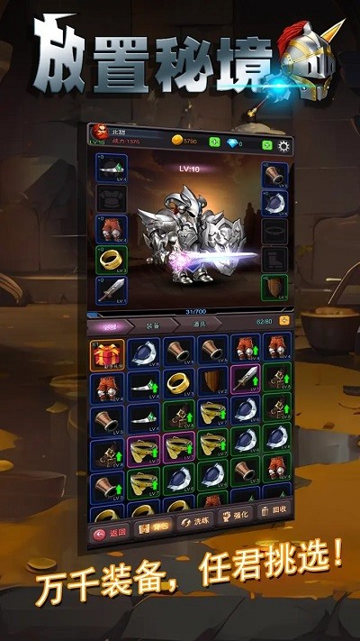 游戏拥有令人惊艳的装备系统,每件装备更换都会实时反映在角色外观上。经典职业体系包含战士、法师、猎人等多种选择,每个职业都拥有独特的技能树和战斗风格。装备库中收录了上千件属性各异的装备,玩家可以自由搭配打造个性化角色。创新的随机词缀系统让每件装备都拥有无限可能。放置养成的核心玩法让玩家即使离线也能持续获得收益,轻松实现战力飞跃。