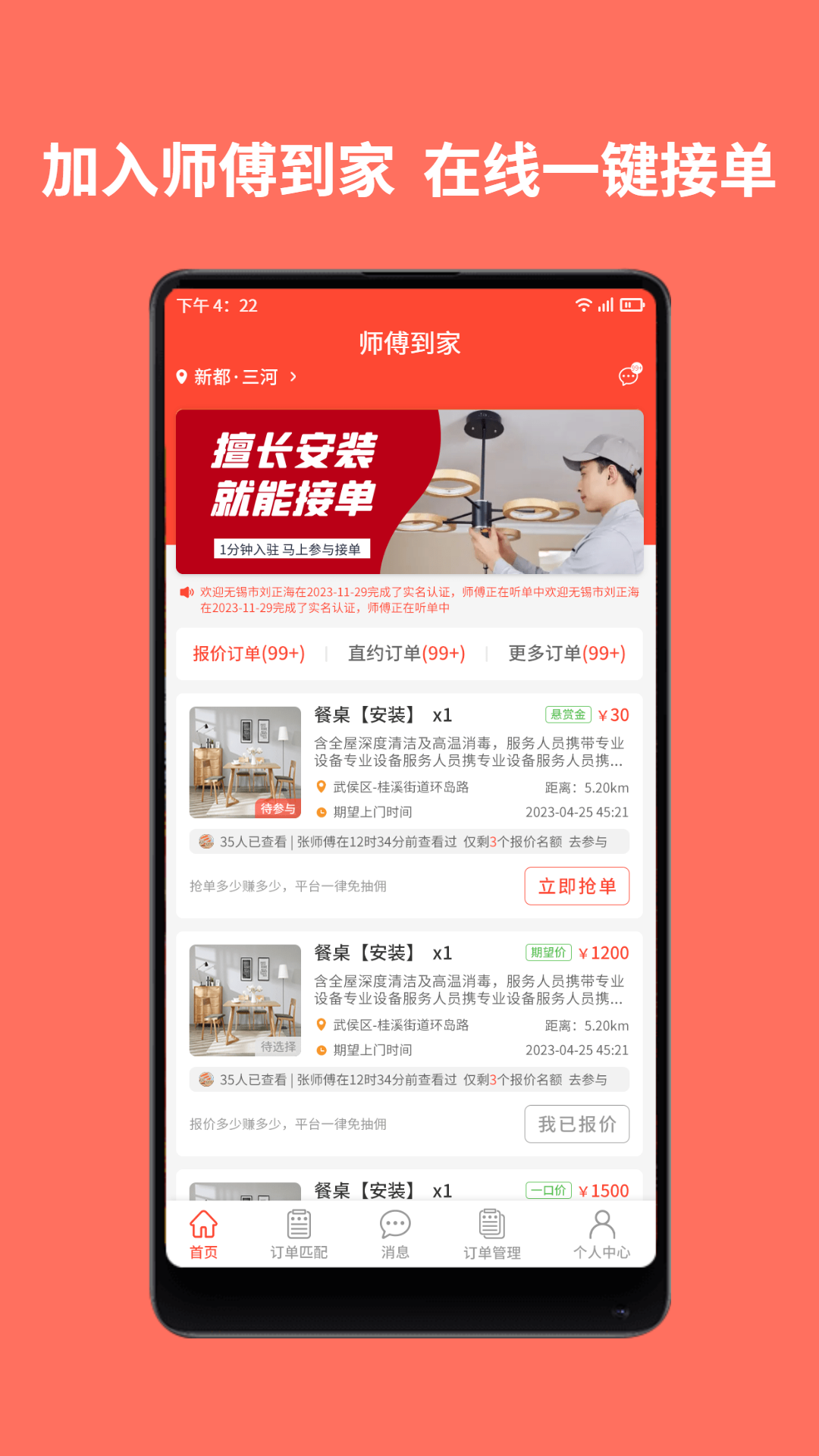 选择师傅到家平台,您将享受到专业、便捷、有保障的上门服务体验。我们始终坚持以用户需求为导向,不断优化服务流程,提升服务质量,致力于成为每个家庭最值得信赖的生活服务伙伴。无论是日常家居维护还是突发问题处理,师傅到家平台都能为您提供及时、高效的专业服务,让您的生活更轻松、更舒适。