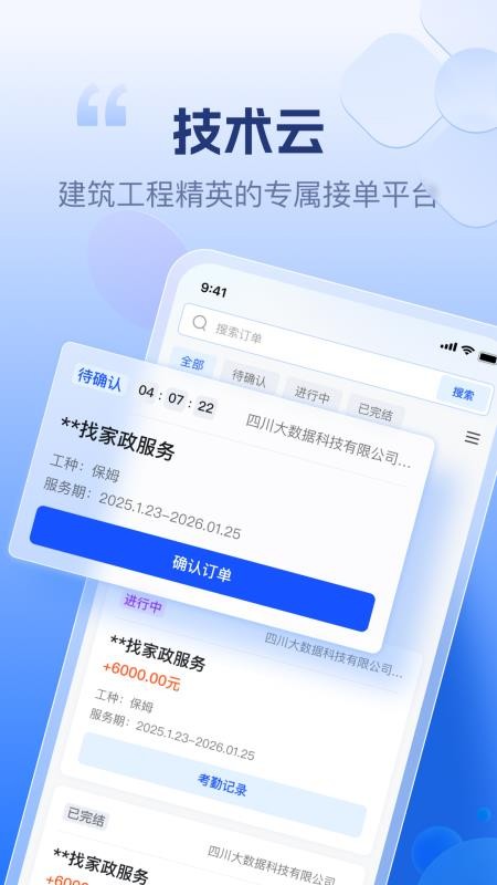 技术云是建筑工程行业的专业人才聚集地,为建筑从业者提供了一个展示技能、获取订单的优质平台。无论您是想利用业余时间增加收入,还是寻求全职自由职业发展机会,技术云都能为您提供全方位的支持。平台严格审核所有订单信息,确保每笔订单的真实性和可靠性,让用户能够安心接单、放心工作。