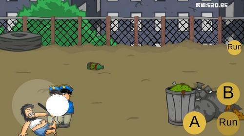游戏开始后,玩家可以使用左侧的虚拟摇杆控制流浪汉在城市中自由移动,探索各个场景。当遇到巡逻的警察时,需要及时按下B键与其互动,根据屏幕提示完成相应动作来推进剧情发展。在探索过程中,靠近垃圾桶等物品会自动触发搜索动作,玩家可以从中获取有用的道具或通关线索。特别要注意屏幕上方的时间提示,按照任务要求前往蓝色车辆所在位置,才能顺利完成关卡目标。游戏的操作简单直观,但需要玩家灵活应对各种突发状况。