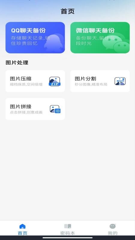 除了核心的聊天备份功能,聊天记录备份云盘最新版还贴心地为用户提供了密码本功能。你可以将各类账号密码加密存储在软件中,再也不必担心忘记重要密码。软件采用先进的加密技术,确保你的密码安全无忧。同时,它还内置了多种图片处理工具,包括图片压缩、分割、拼接等功能,让你可以轻松编辑和管理手机中的图片,满足工作与生活中的多样化需求。