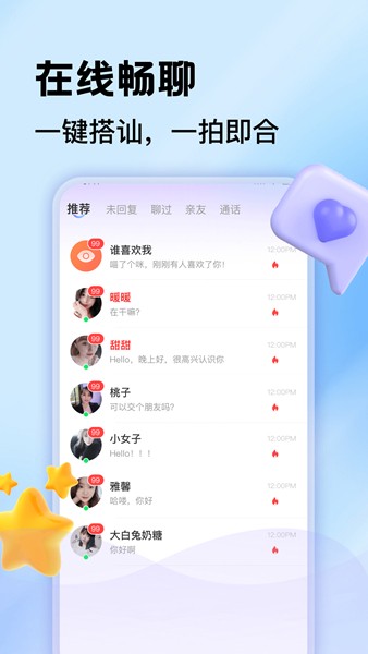 支持1080P高清视频通话,流畅不卡顿。独创的"破冰游戏"功能,让初次视频不再尴尬,内置多种互动小游戏增进彼此了解。