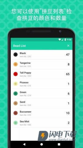 在"拼豆列表"中,会显示所使用的拼豆数量、颜色以及项目编号,让用户随时掌握材料使用情况。系统还会智能统计各颜色拼豆的用量比例,帮助用户更好地规划材料采购。