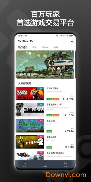 SteamPY(Steam交易平台)是一款专为Steam玩家打造的专业级游戏交易平台,致力于为用户提供全方位、安全便捷的交易服务。平台的核心功能包括折扣游戏购买、Steam账号交易、低价cdkey兑换等特色服务,每日实时更新海量游戏资源,确保玩家能够第一时间获取最新优惠。交易流程采用平台全程托管模式,从下单到交付形成闭环管理,有效保障交易安全,让玩家享受无忧购物体验。其最大亮点在于深度聚焦Steam玩家的核心需求,通过整合全球游戏资源渠道,为玩家提供比官方渠道更低廉的价格,真正实现"用更少的钱玩更多的游戏"这一理念。