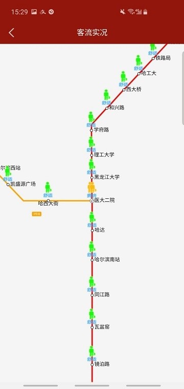 据哈尔滨地铁集团信息中心负责人介绍,为提升用户体验,"Metro冰城行"整合了高德地图的数据接口,在首页顶部即可获取最近车站的智能推荐。通过站点信息栏目,用户可以查看各车站周边的建筑分布、公交接驳线路,以及站内布局、出入口位置、设施分布等详细信息。同时,APP还能实时显示列车到站时间和客流情况,帮助乘客合理规划出行。