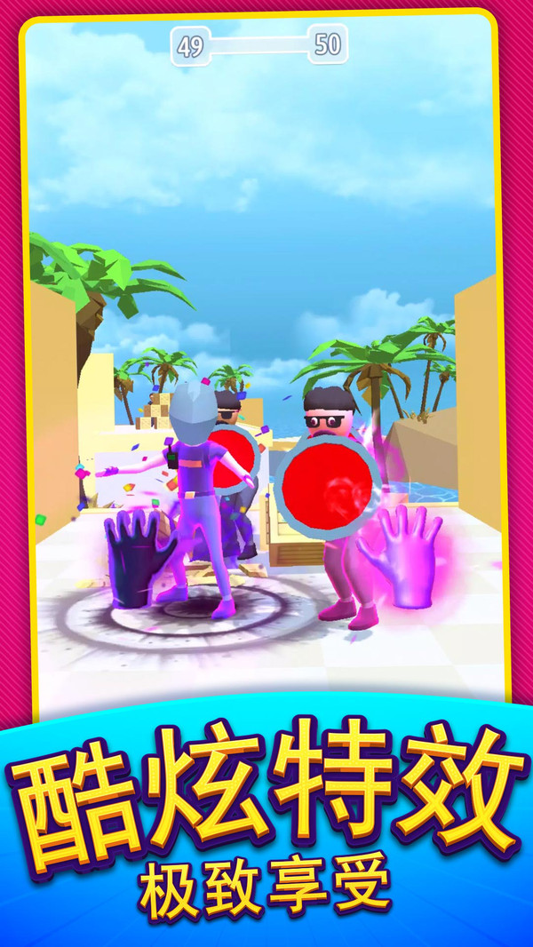 进入游戏后,玩家将置身于一个充满动感的战斗世界。游戏采用独特的双屏操作机制,左手控制防御与位移,右手负责进攻与技能释放。两只手的攻击方式各具特色,需要玩家巧妙配合才能发挥最大威力。游戏设有数十个精心设计的关卡,每个关卡都有不同的地形特点和敌人配置,玩家需要灵活运用移动和攻击技巧,在激烈的对抗中取得胜利。
