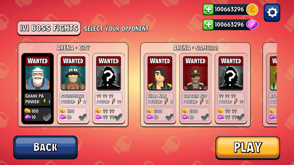 选择你的角色点击PLAY即可开始游戏,游戏提供8个风格迥异的角色供选择,每个角色都拥有独特的战斗风格和必杀技;