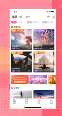 社区动态功能让用户分享生活中的精彩瞬间,通过照片、视频或文字记录美好时刻。平台会实时更新所有用户的动态,在这里你可以点赞、评论和关注,结识更多志同道合的朋友。