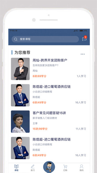课程推荐板块精选最新最热门的酒类课程,包括行业趋势分析、品鉴技巧等多样化内容,满足不同用户的学习需求。