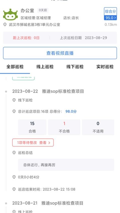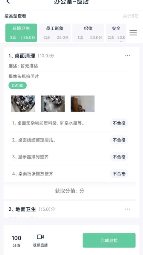 完成巡检的监控任务可以在应用中反馈分数,知道门店综合得分,评分标准可自定义设置,系统自动生成分析报告,直观展示各分店表现。