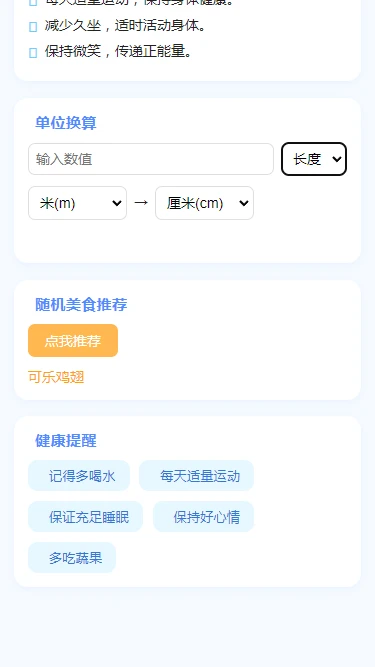 便捷魔盒是一款全能生活助手,集任务管理、实用工具和健康服务于一体,助您高效打理日常生活。内置智能待办清单,可随时添加/管理任务;提供精准单位换算、每日生活小妙招;更有随机美食推荐解决吃什么难题,搭配健康提示培养良好习惯。一应俱全的功能设计,让生活琐事变得简单有序!