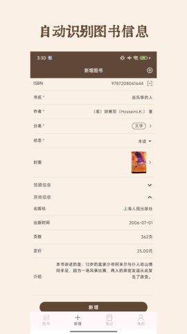 新增图书功能让用户可以通过扫码快速识别图书信息,只需几秒钟就能完成图书录入,大大提升了图书管理的效率。同时支持手动输入图书信息,满足不同用户的需求。
