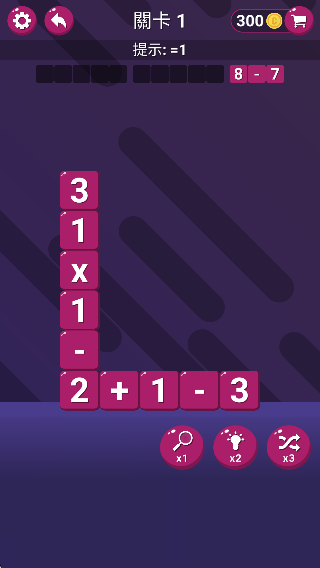 通关解锁续挑战:完成当前关卡后,解锁新的关卡,面对更复杂的计算组合与隐藏等式,继续通过简单操作享受数学益智的乐趣,提升思维能力。游戏采用动态难度调整机制,会根据玩家表现智能匹配适合的挑战难度。
