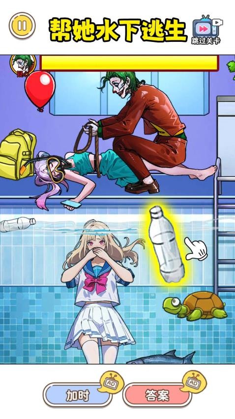 《帮女孩摆脱危机》是一款充满创意与紧张刺激的休闲益智游戏,玩家将在其中扮演拯救者的角色,帮助陷入危险的女孩们摆脱困境。游戏采用独特的剧情驱动模式,每个关卡都设计了不同的危机场景,玩家需要运用智慧与策略,利用场景中的道具和武器,为女孩们创造逃脱的机会。无论是水下呼吸的紧迫感,还是面对坏人的惊险对决,游戏都能带给玩家身临其境的体验。