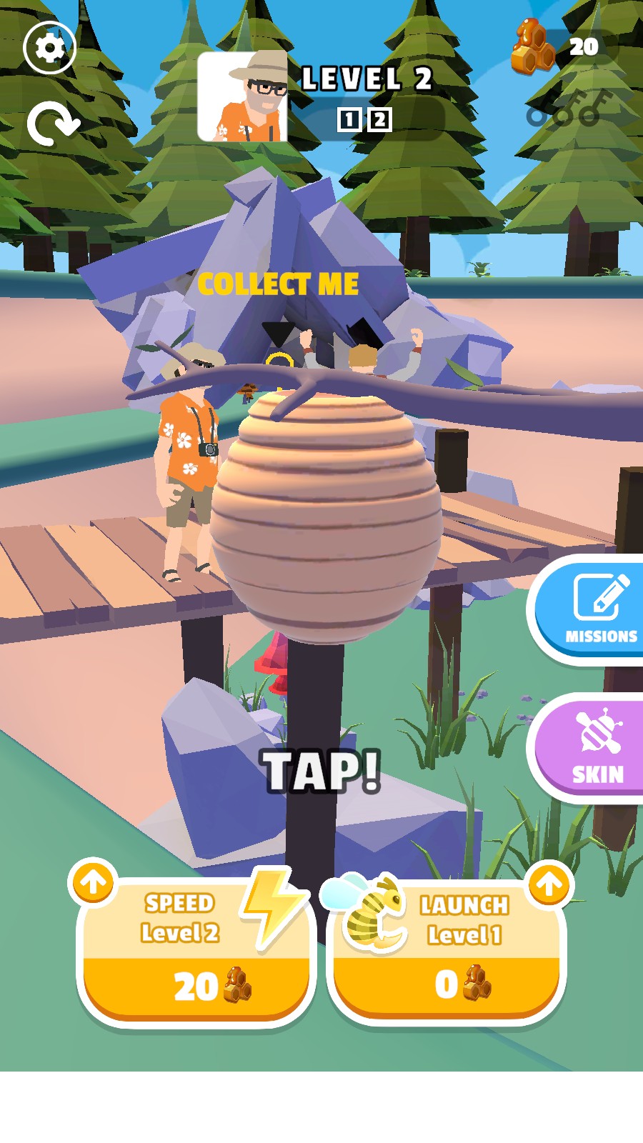玩家需要精准控制蜜蜂的飞行轨迹,通过滑动屏幕来调整攻击角度,确保蜜蜂能够准确命中站在桥上或其他特殊位置的目标人物。这个操作过程既考验玩家的反应能力,也需要一定的预判技巧。