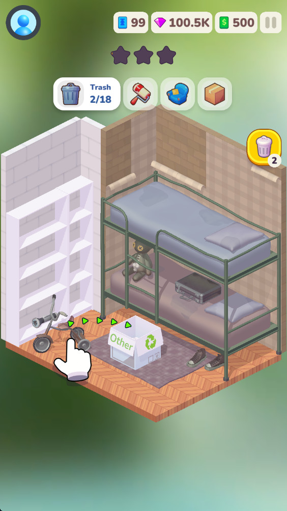 游戏的操作简单直观,新手玩家可以快速上手。当你首次进入游戏时,系统会引导你完成基础的教学关卡。首先需要通过点击屏幕来触发游戏剧情,了解当前任务目标。在第一个任务中,你需要点击场景中的箱子将其打开,这是获取基础家具和装饰品的重要途径。